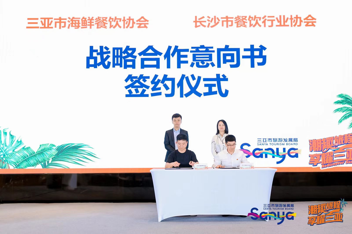 长沙市餐饮行业协会副秘书长黄绍满和三亚市海鲜行业协会副秘书长易志强签订协会战略合作意向书